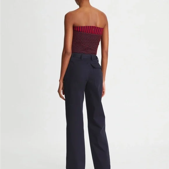 NEW with tag attachedSize 0Diamond PatternHidden Side Full ZipFrom Tory Burch:“The Spring/Summer 2022 collection is inspired by the freedom and versatility of classic American sportswear. Timeless pieces are done in new ways, with a focus on casual elegance. New for the season, our cotton poplin bustier is a sleek interpretation of a retro-style underpinning. Structured yet lightweight, the quilted topstitching creates a graphic pattern. Play with proportions and contrast when you layer it over our stretch knit bandeau, paired with slouchy trousers, as seen on our runway.”Model is 5'9.5" (177 cm) and is wearing a US size 2100% cotton100% cotton liningZipper with hook-and-eye closureDry cleanStyle Number 136776Pet/smoke-free